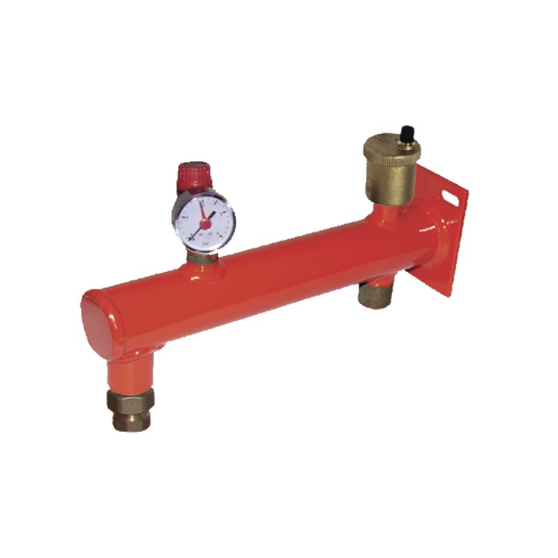 Console supporto per vaso fino a 35L dotato di una valvola di sicurezza F1/2, di una valvola di sfiato M3/8, di una valvola d'isolamento MF3/4. Lunghezza della console 300mm. Raccordo riscaldamento M3/4