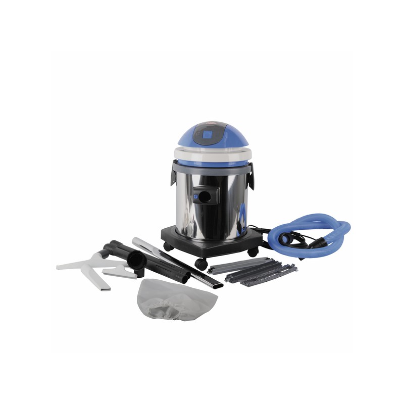 Questo aspiratore su ruote aspira diversi tipi di polvere.Che si tratti di ceneri tiepide, di cemento, di segatura o di acqua l'aspiratore aspirerà perfettamente grazie al suo filtro speciale antistraripamento il suo serbatoio in inox amagnetico evita tutti i problemi di corrosione legati agli acidi contenuti nelle ceneri caldeE' l'apparecchio ideale da collegare a strumenti elettrici come seghe a svolgere o circolariLa testa a clip permette l'inserimento/disinserimento rapido per la pulizia dei filtri