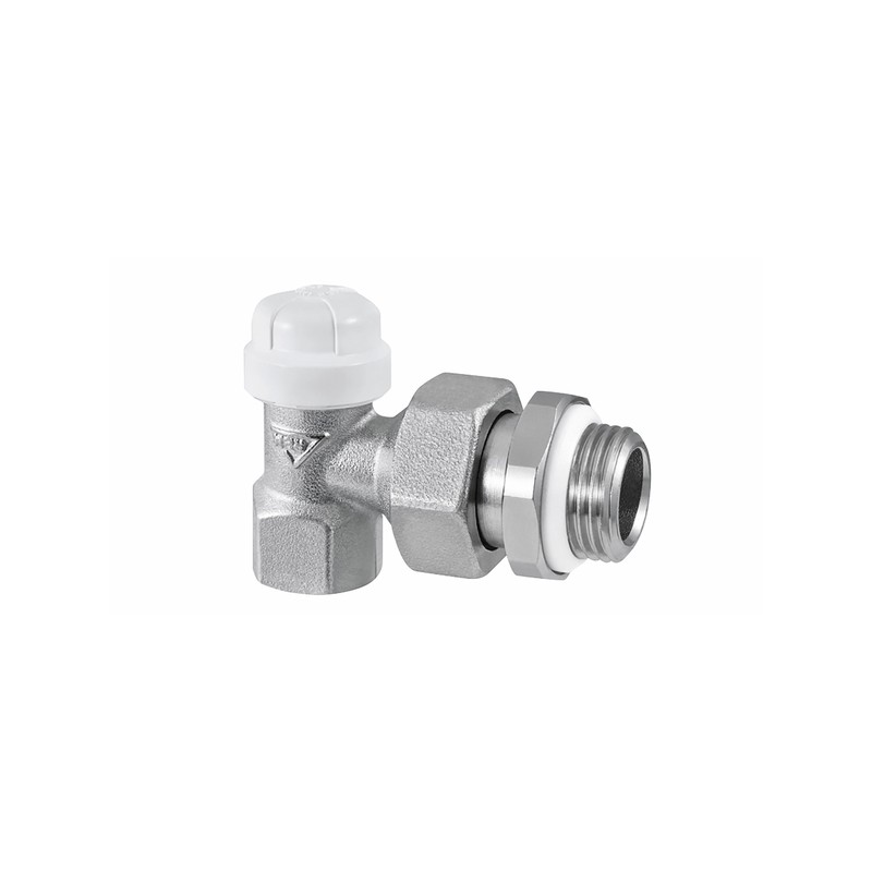 Detentore di regolazione ad angolo JETLINE 3/8 RFS con raccordo RFS regolazione e interruzione Corpo in ottone nichelato Coperchio in ABS Pressione max 10 bar Collegamento F 3/8