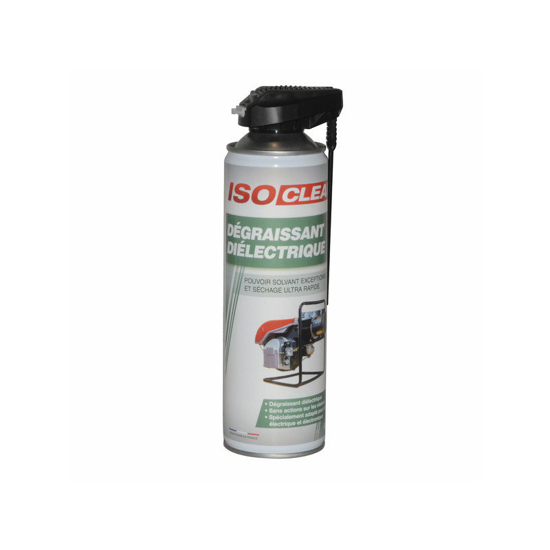 Lo sgrassante dielettrico ISOCLEAR® è formulato per non condurre corrente, caratteristica fondamentale nei settori HVAC dove talvolta è difficile isolare completamente i componenti elettrici durante gli interventi. Rimuove grasso, sporco, polvere e residui di carbonio. Pulizia di schede di controllo, pannelli di comando, termostati elettronici, sensori di pressione, schede elettroniche di unità di climatizzazione... Lo sgrassante dielettrico non ha alcun effetto sulle resine termoindurenti e sulla maggior parte dei materiali plastici (PVC, PET, PP, nylon...).