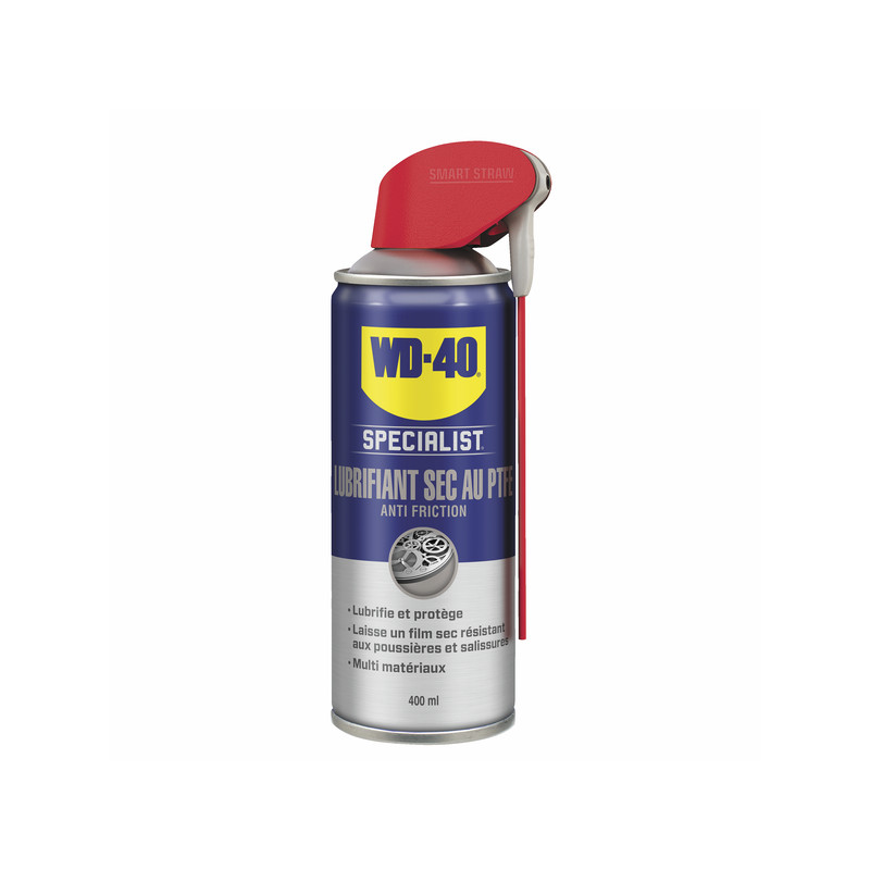 Il Lubrificante Secco al PTFE WD-40 Specialist® contiene del Poli Tetra Fluoro Etilene che, ponendo una pellicola sul supporto, non solo assicura una migliore lubrificazione, ma respinge polveri, sporco o oli. Altra qualità, secca rapidamente e può anche essere utilizzato come agente di sformatura.