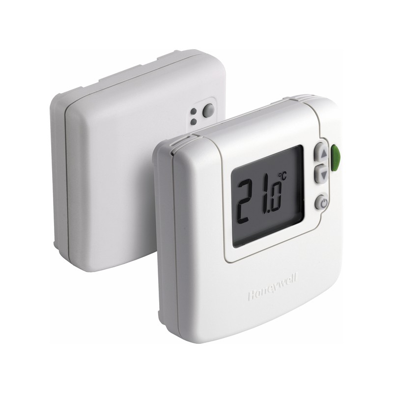 Termostato ambiente digitale a RF alimentato a batterie comprendente un termostato ambiente con un ampio schermo LCD e un relé. Comunicazione bidirezionale tra i due moduli. Per comando di caldaia, valvola di zona, pompa, motore termico, convettore elettrico, ventiloconvettori, ecc... Logica di controllo auto-adattabile tipo TPI Con tasto per riduzione di consegna ECO Tempo On/Off regolabile Protezione anti-congelamento Limiti di punti di regolazione programmabili Posizione di sicurezza Modalità installatore Informazione sulla potenza del segnale RF di trasmissione Approvazioni : CE Indice di protezione : IP30 Scatola relé 230Vca Contatto deviatore SPDT 24..230 Vca, Interruttore resistivo 5 A e induttivo 3 A Fonte di alimentazione : scatola relé : 230 V, 1 VA Termostato : alimentato a pile, 2 x 1,5 V AA Alkaline Durata della batteria : minimo 2 anni Sezione cablaggio max sui terminali : 2,5mm2 Intervallo di regolazione della consegna : 5...35C Segnale di uscita : tutto o niente Deroga manuale : -arresto/stand-by, -punto di consegna, -ECO Informazione sullo schermo del termostato : Temperatura ambiente, punto di consegna, modalità OFF/STAND-BY, stato del relé, comunicazione RF, modalità ECO con conteggio del tempo rimanente, protezione anti-congelamento, guasto interno, batteria quasi scarica, perdita della comunicazione RF Funzioni dei LED : scatola relé : Spia verde indicante lo stato di uscita del relé, test di trasmissione RF Spia rossa che indica lo stato di riconoscimento, il reset del modulo, perdita della comunicazione RF Lingua delle istruzioni tecniche : istruzioni d'uso multilingue consegnate con il prodotto Ingombro (HxLxP) : 92mm|90mm|27/30,5mm Termostato con scatola relé Modello : con tasto di riduzione di consegna ECO