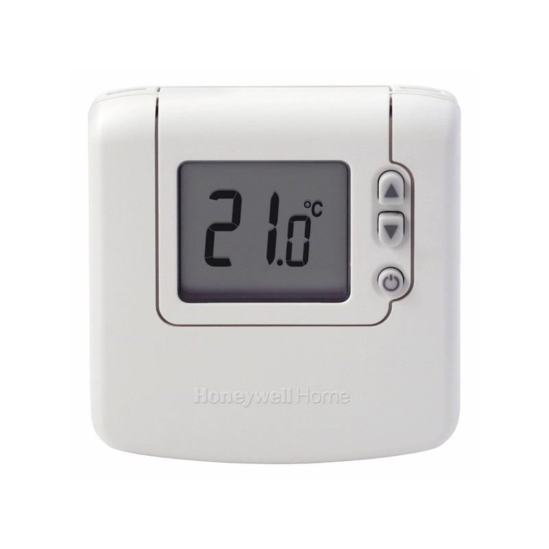 uscita a relé. DT90A1008 Termostato ambiente digitale non programmabile con connessione tramite fili con largo schermo LCD. Per comando caldaia, valvola di zona, pompa, motore termico, convettore elettrico, ventilo-convettore, ecc... logica di comando auto-adattabile tipo TPI banda proporzionale regolabile tempo ON/OFF regolabile protezione anti-congelamento limiti dei punti di consegna regolabili posizione di sicurezza modalità installatore Approvazione : CE Indice di protezione : IP30 Contatto tipo/potere di interruzione : inversore 24..230 Vac, 8 A capacitativo, 3 A induttivo; Contatto deviatore Fonte alimentazione : alimentato con pile, 2 x 1,5 V AA Alkaline Sezione di cablaggio max sui terminali : 2,5mm2 Intervallo di regolazione della consegna : 5...35C Segnale di uscita : Tutto o niente Derogazione manuale : -arresto/stand-by, -punto di consegna, -ECO Modalità manuale Caldo/Freddo : C/F Lingua delle istruzioni tecniche : guida all'utilizzo plurilingue consegnata con il prodotto Doppia isolazione Ingombro (HxLxP) : 92mm|90mm|27mm